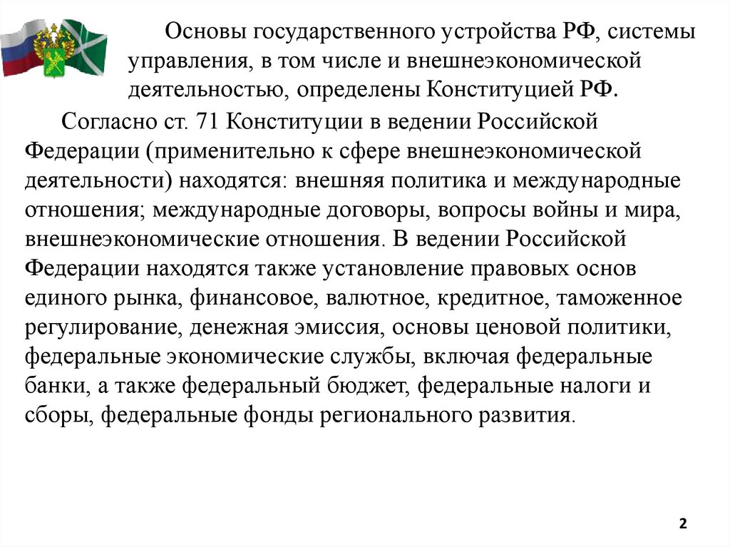 Основы государственного устройства РФ, системыуправления, в том числе и внешнеэкономической