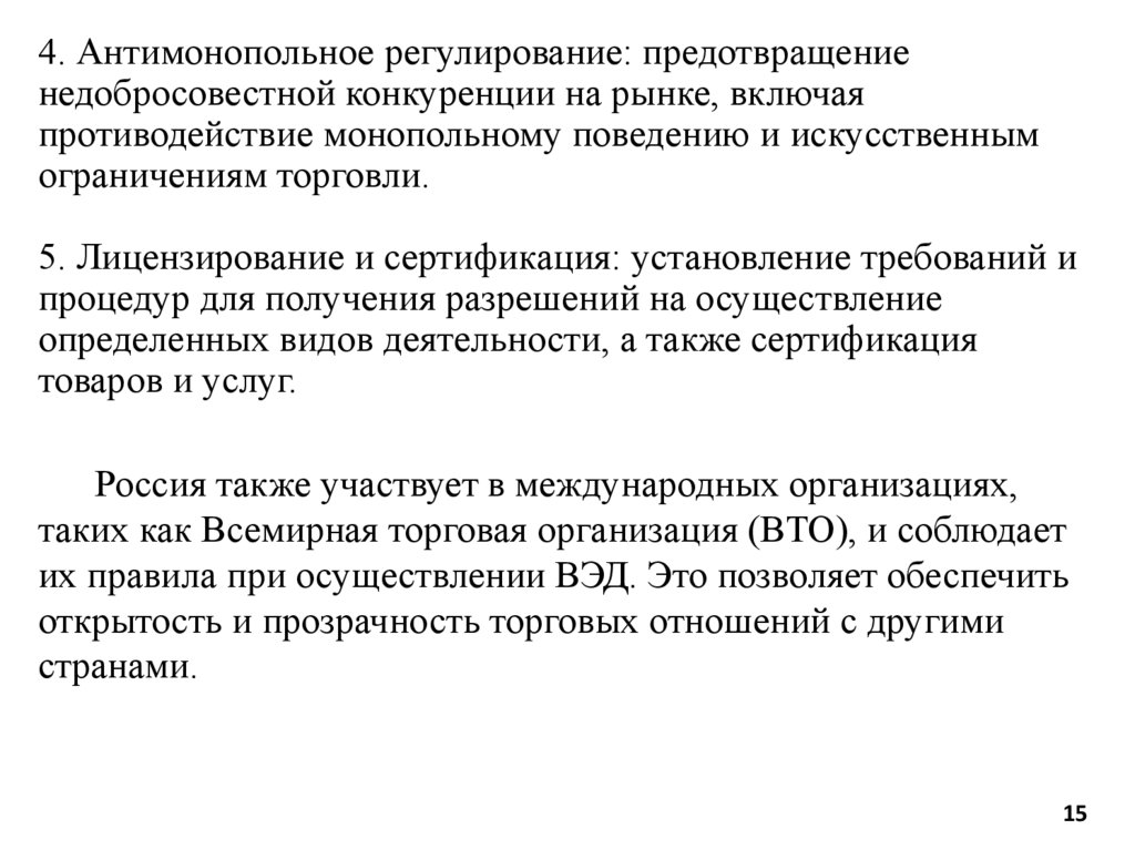 (ВТО) и другие международные соглашения.