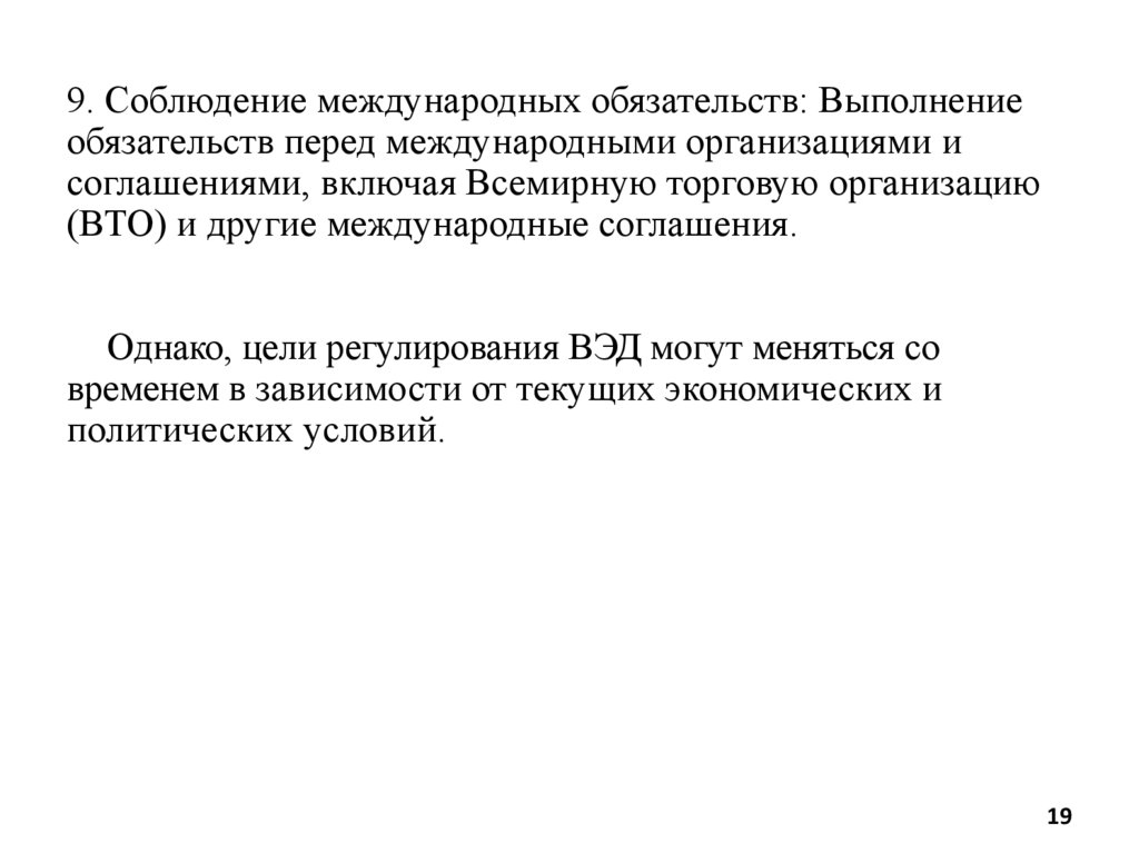 Однако, цели регулирования ВЭД могут меняться со