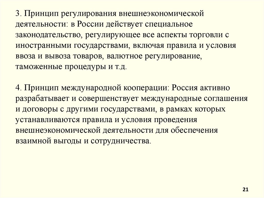 20. Принципы регулирования внешнеэкономической деятельности (ВЭД) в России