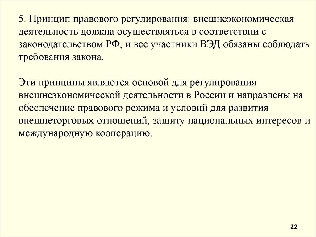5. Принцип правового регулирования: внешнеэкономическаядеятельность должна осуществляться в соответствии с