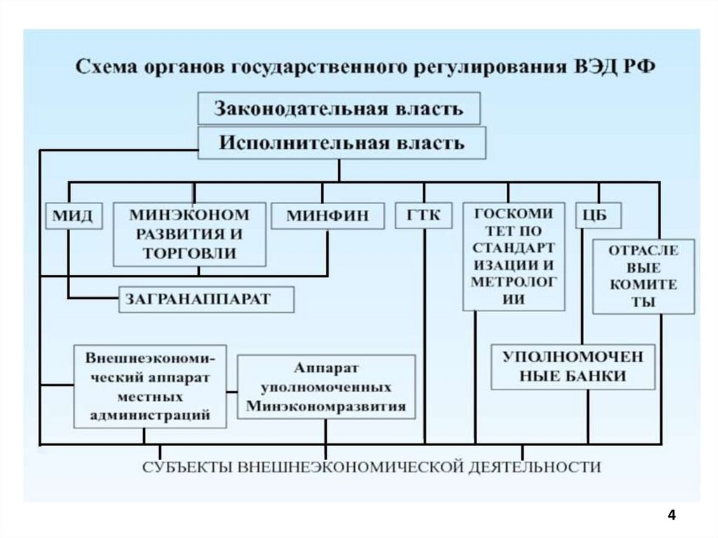 10. Структура государственных органов и их функции в области регулирования внешнеэкономической деятельности в РФ