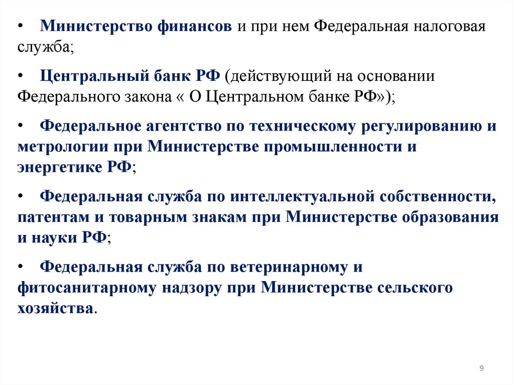 • Центральный банк РФ (действующий на основании