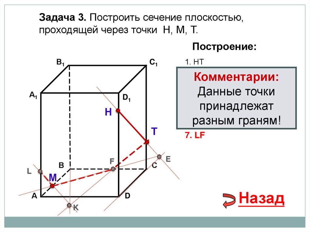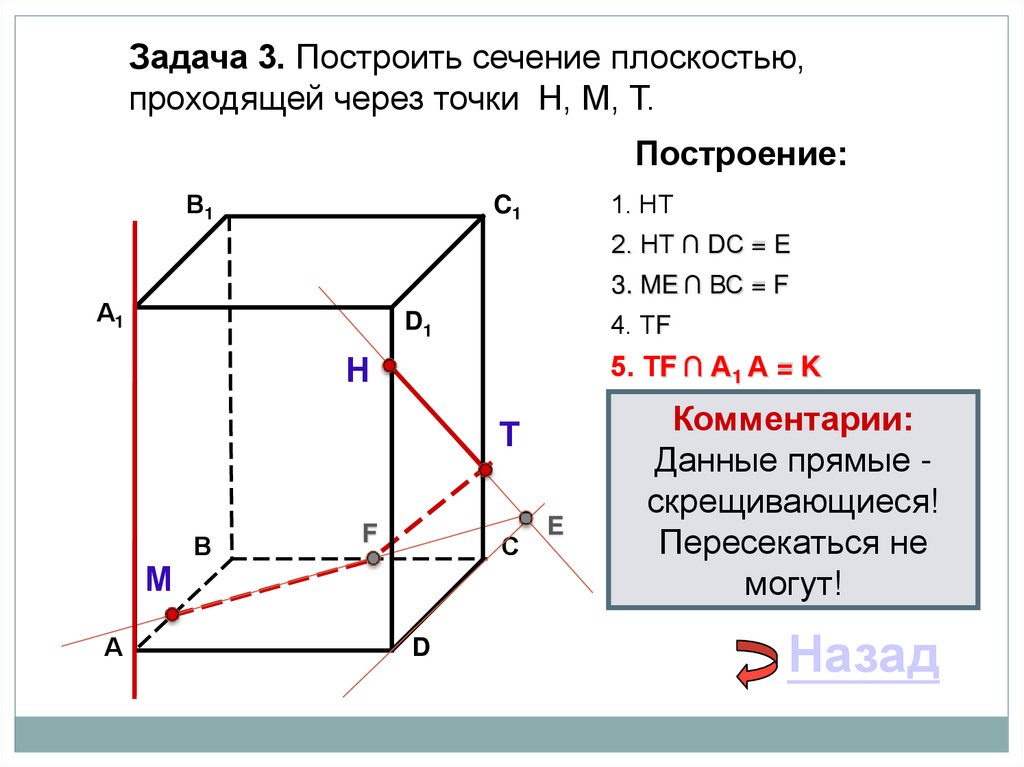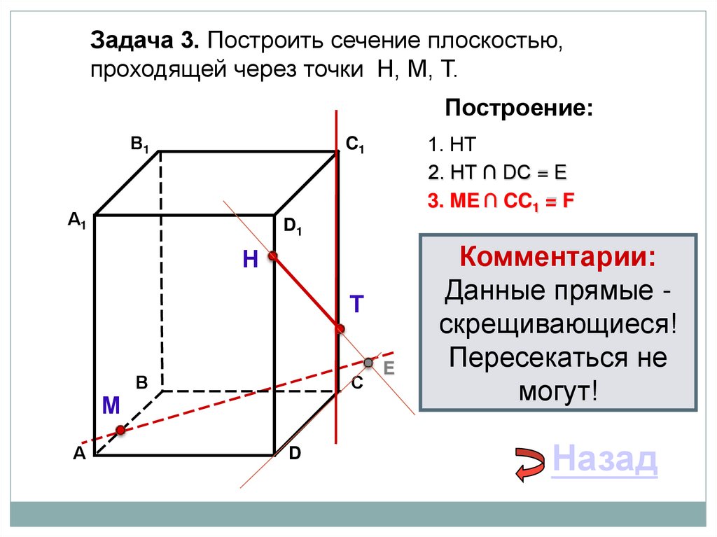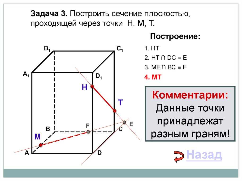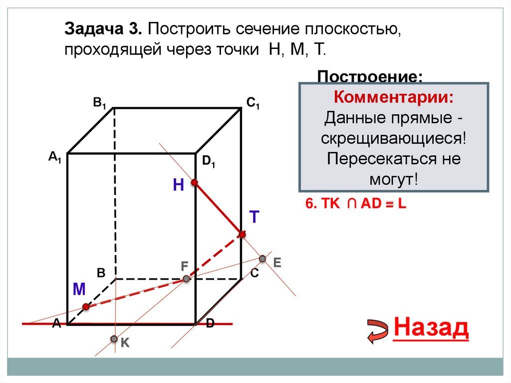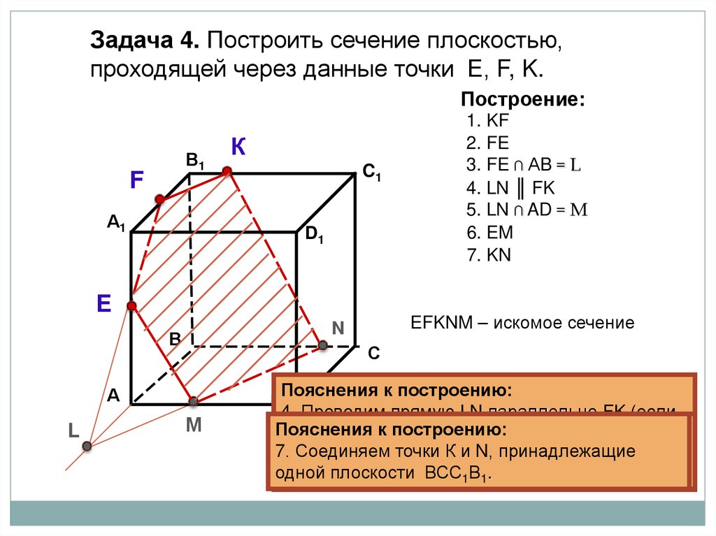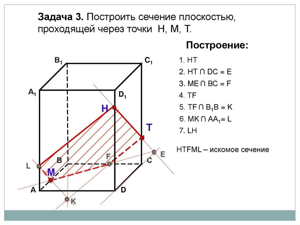 Задачи на построение сечения тетраэдра и параллелепипеда с объяснением