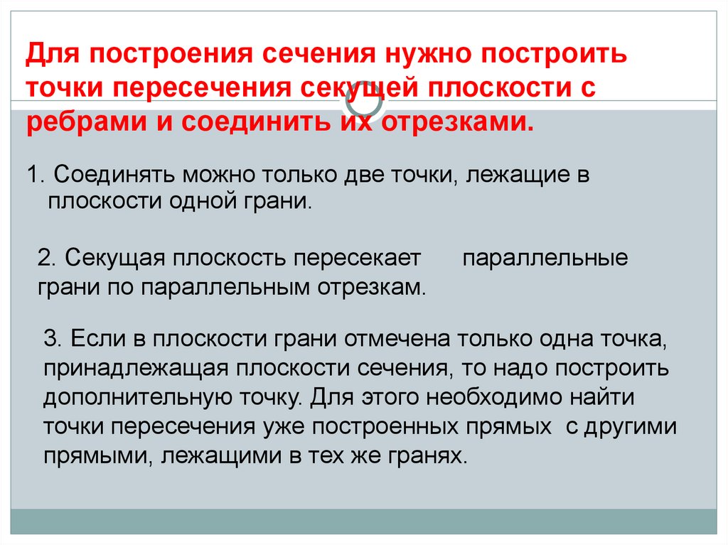 Для решения многих геометрическихзадач необходимо строить их сечения