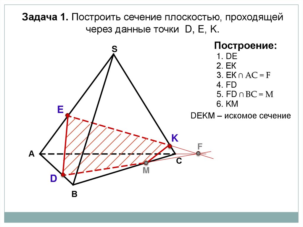 Задача 1. Построить сечение плоскостью, проходящейчерез данные точки D, Е, K.