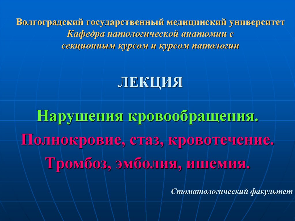 1. Волгоградский государственный медицинский университет Кафедра патологической анатомии с секционным курсом и курсом патологии
