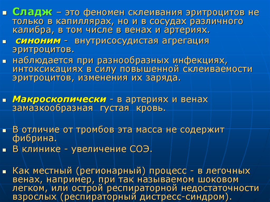 (стаз, сладж-феномена, тромбоз и эмболия).