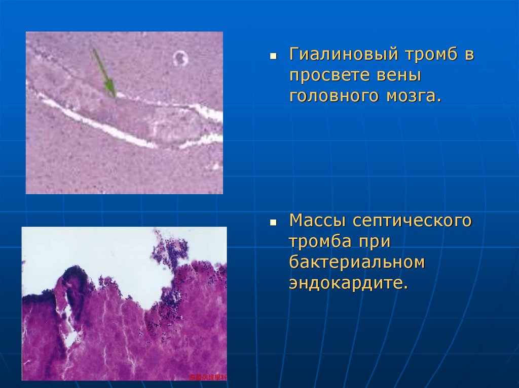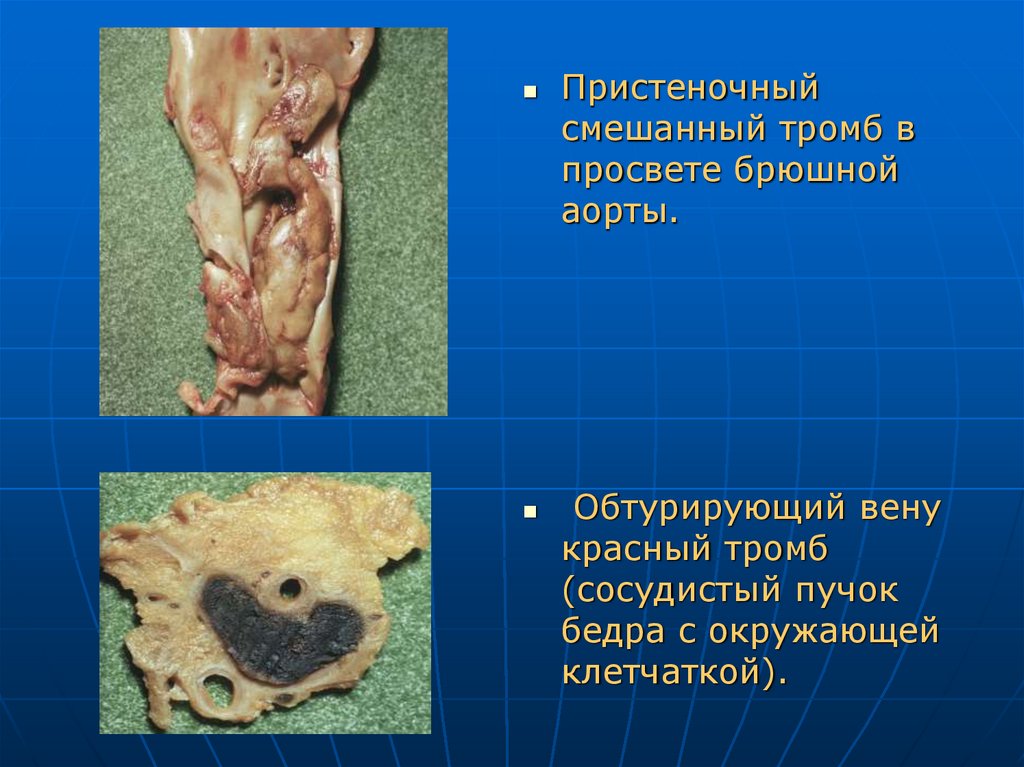 1) тромбоэмболия (возникает при отрыве тромба или его части,обычно при венозном тромбозе),