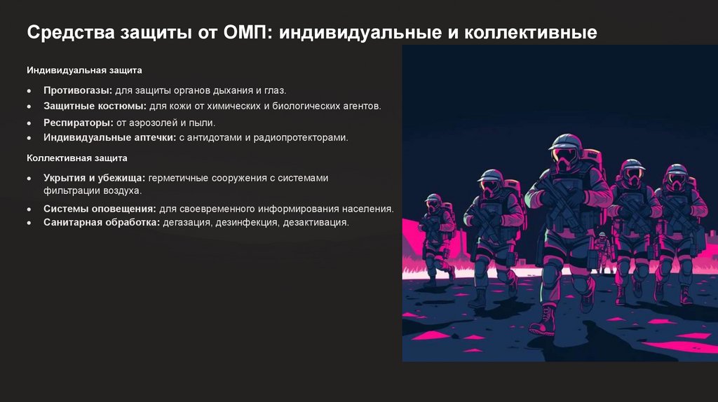 Средства защиты от ОМП: индивидуальные и коллективныеИндивидуальная защита
