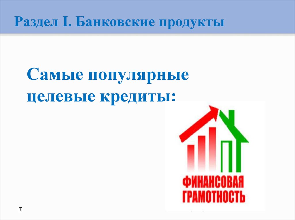 Раздел I. Банковские продуктыНа жилье. Самой распространенной, несомненно, является ипотека, когда покупаемое