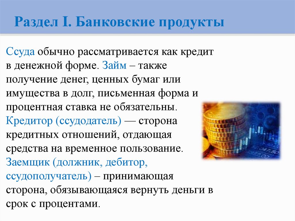 Раздел I. Банковские продуктыСсуда обычно рассматривается как кредит