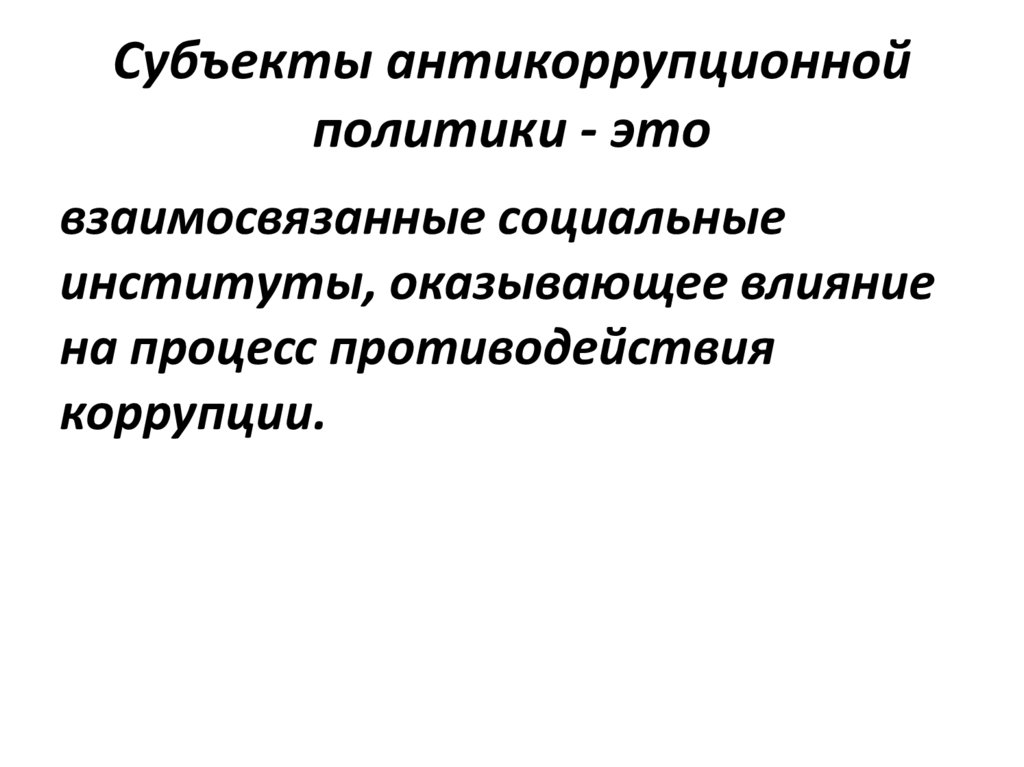 • Противодействие коррупции – это деятельностьорганов государственной власти, институтов