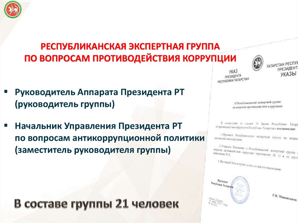 21. УПРАВЛЕНИЕ ПРЕЗИДЕНТА РЕСПУБЛИКИ ТАТАРСТАН ПО ВОПРОСАМ АНТИКОРРУПЦИОННОЙ ПОЛИТИКИ