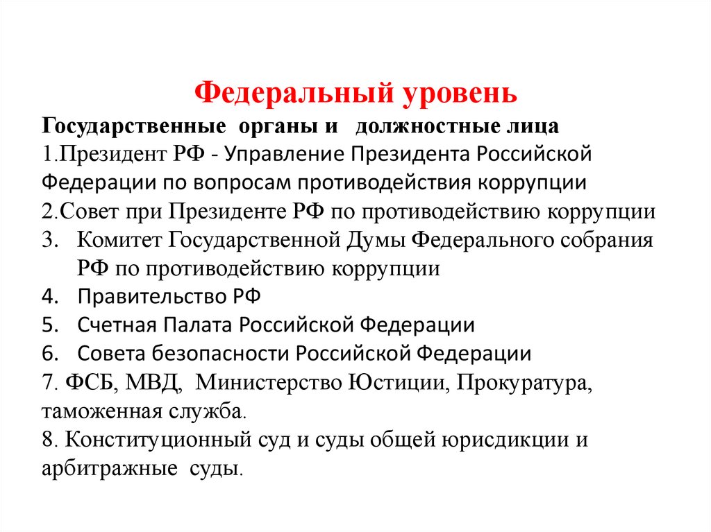 4. Субъектами антикоррупционной политики являются государственные органы и должностные лица, имеющие следующие полномочия: