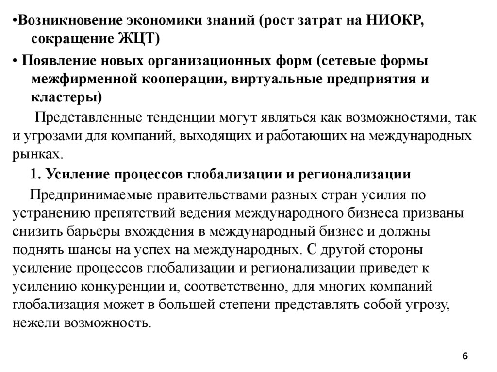 •Возникновение экономики знаний (рост затрат на НИОКР,сокращение ЖЦТ)
