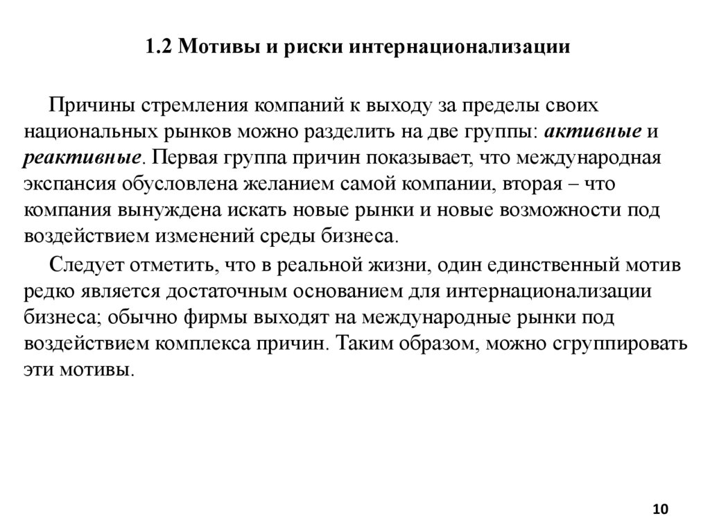 5. 1. Мотивы и риски выхода компаний на зарубежные рынки