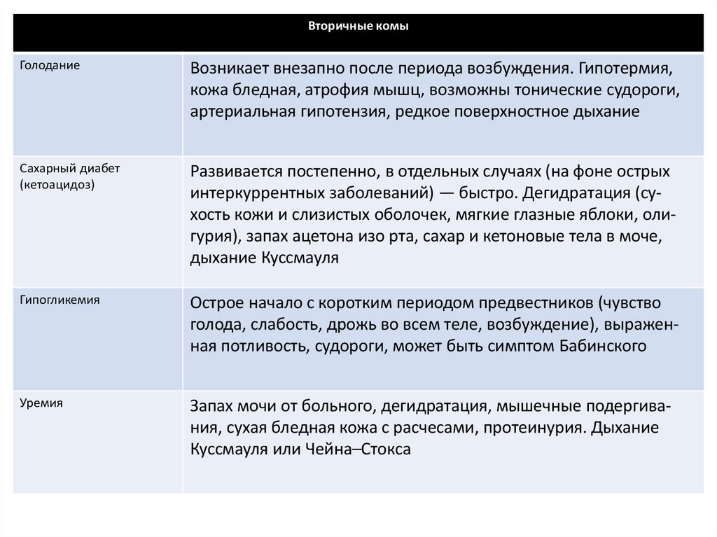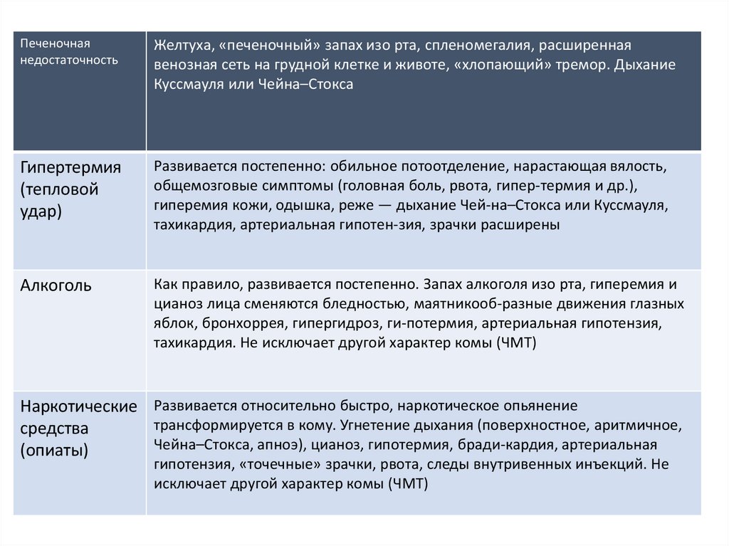 мм рт.ст.), метаболические комы, действие наркотизирующих и
