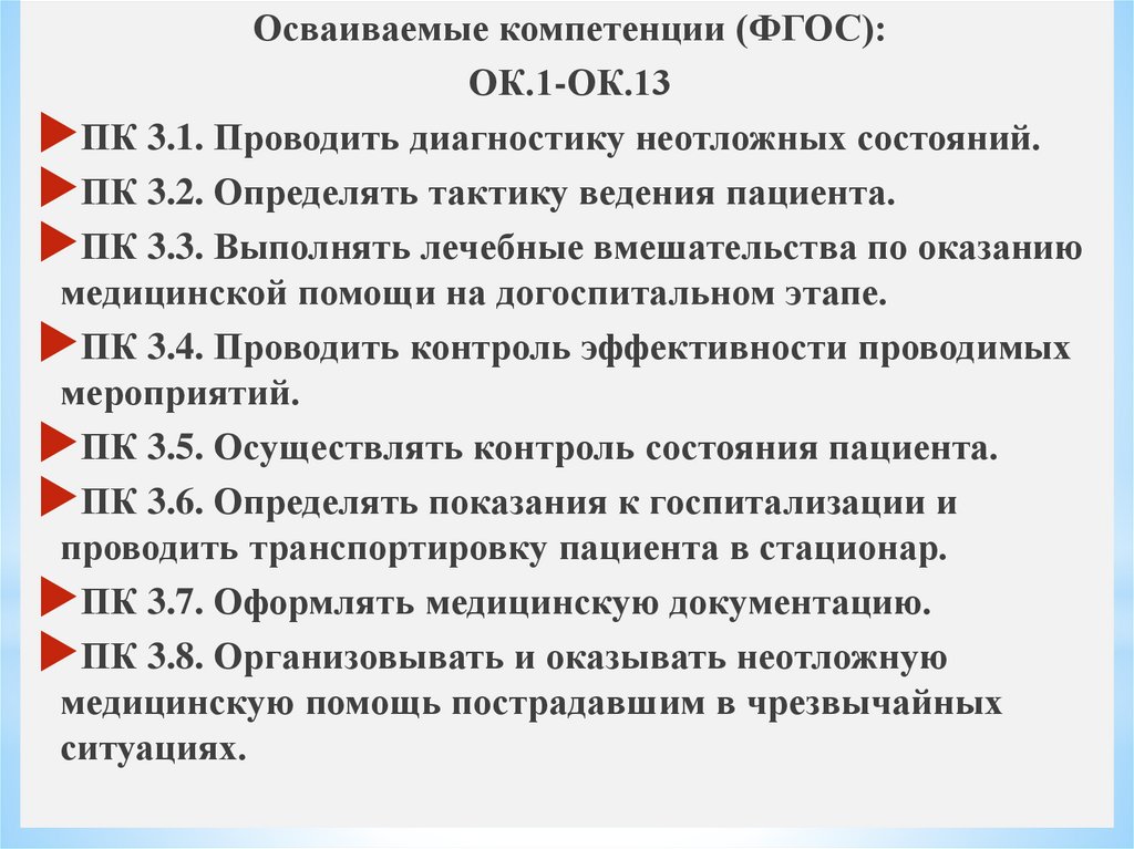 Осваиваемые компетенции (ФГОС):ОК.1-ОК.13