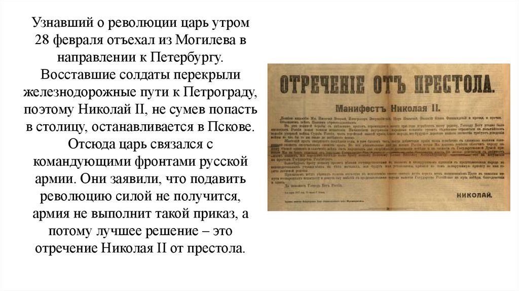 хлебных лавок. На этом фоне Николай II 22 февраля