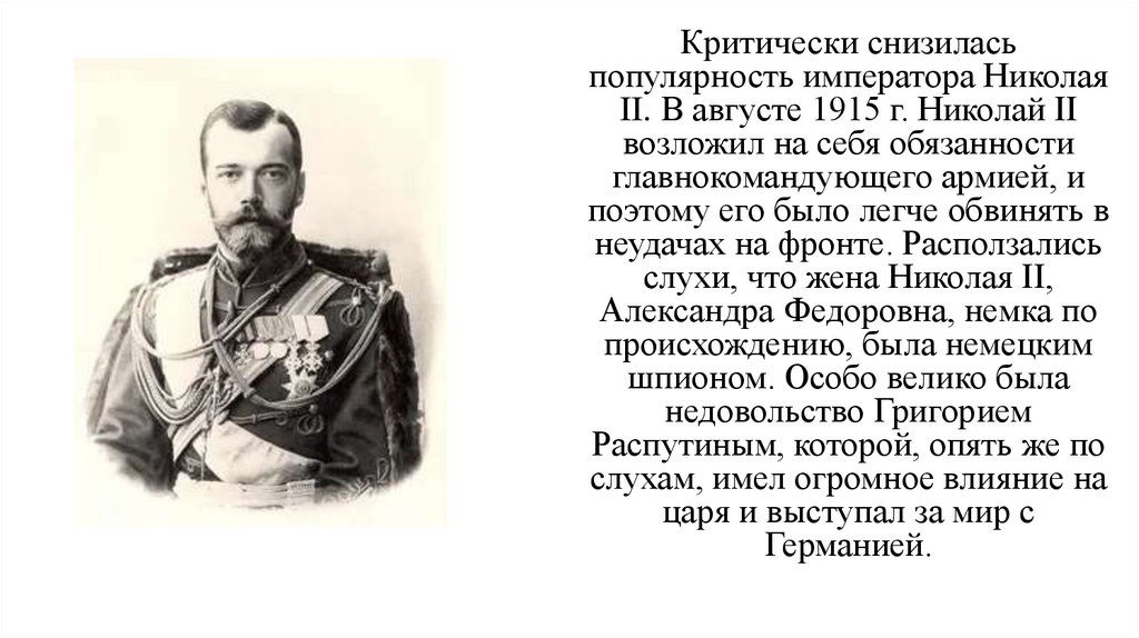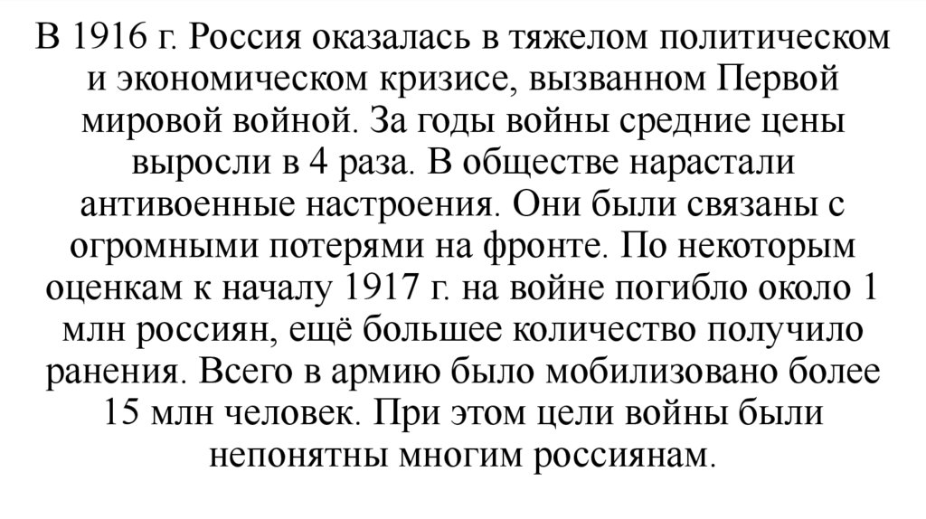 В 1916 г. Россия оказалась в тяжелом политическоми экономическом кризисе, вызванном Первой