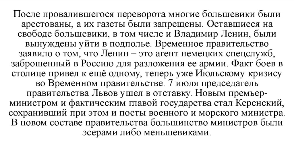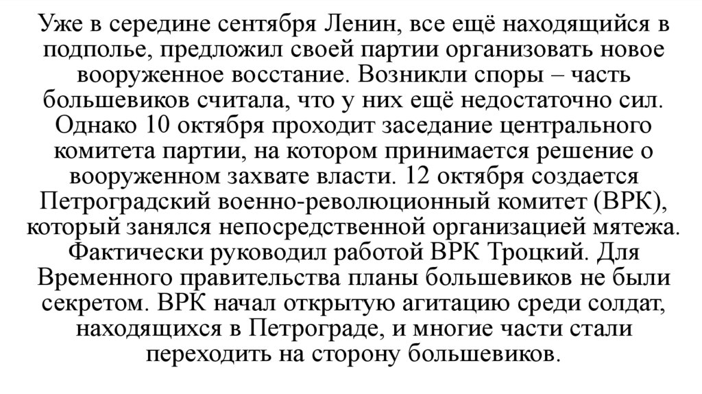 Уже в середине сентября Ленин, все ещё находящийся вподполье, предложил своей партии организовать новое