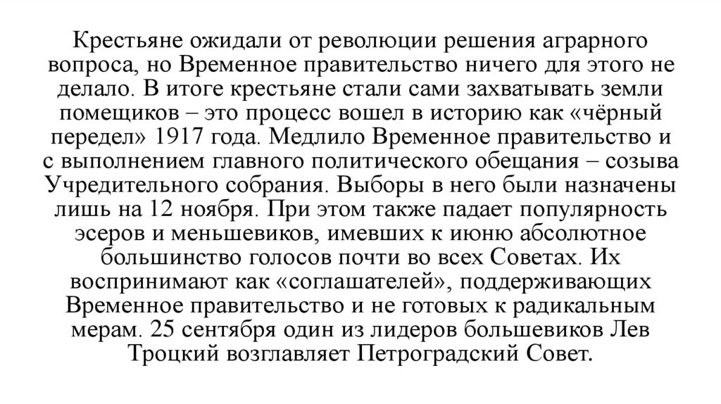 крестьянских Советов; вопрос об окончательном решении земельного вопроса