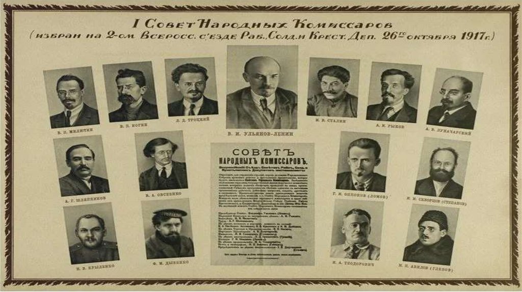 комиссарами, или просто наркомами. Возглавил СНК Ленин, которым таким
