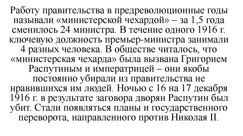 Работу правительства в предреволюционные годыназывали «министерской чехардой» – за 1,5 года