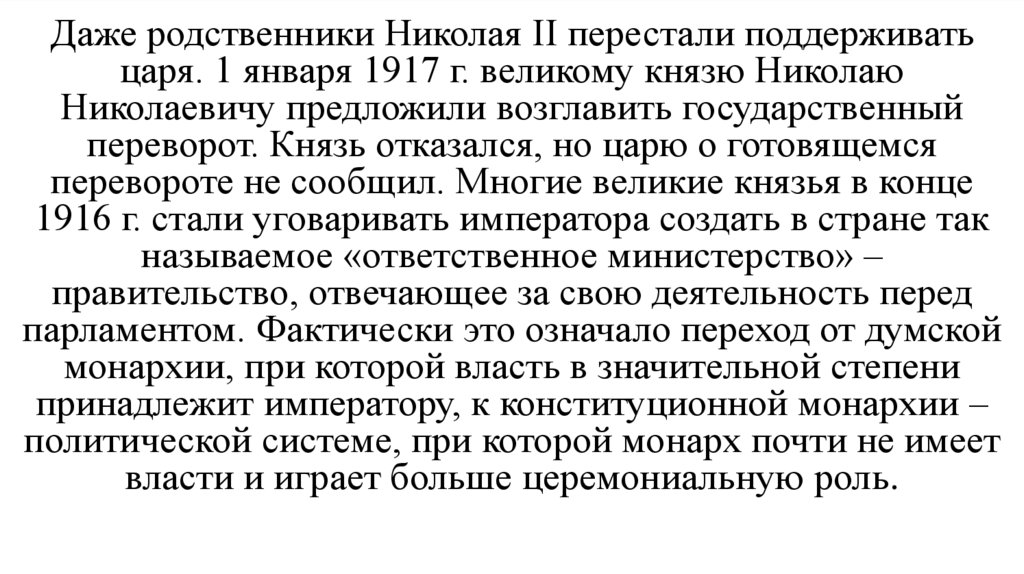 Даже родственники Николая II перестали поддерживатьцаря. 1 января 1917 г. великому князю Николаю