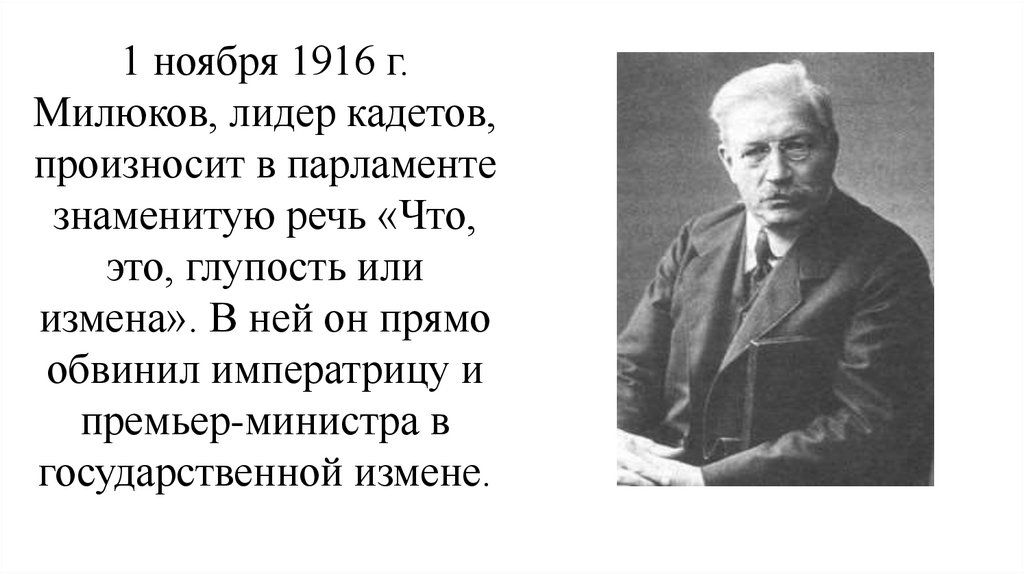 1 ноября 1916 г.Милюков, лидер кадетов,