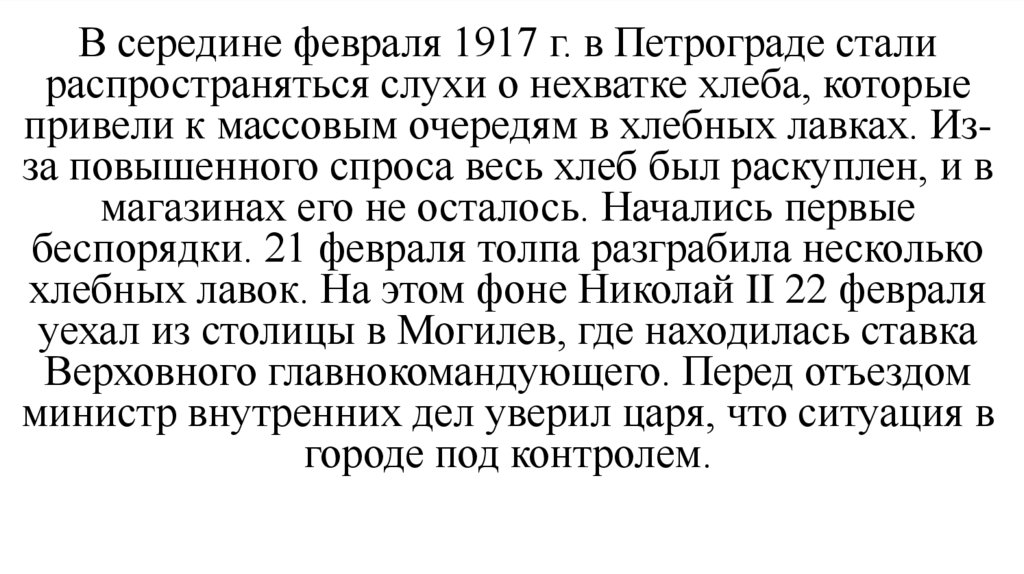 В середине февраля 1917 г. в Петрограде сталираспространяться слухи о нехватке хлеба, которые