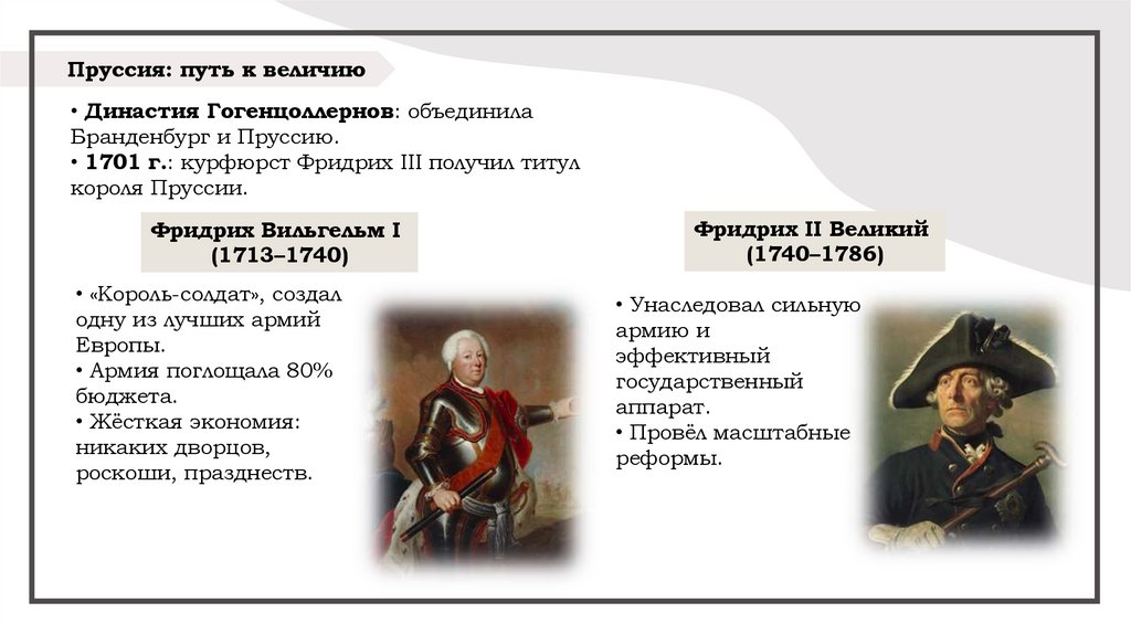 Пруссия: путь к величию• Династия Гогенцоллернов: объединила