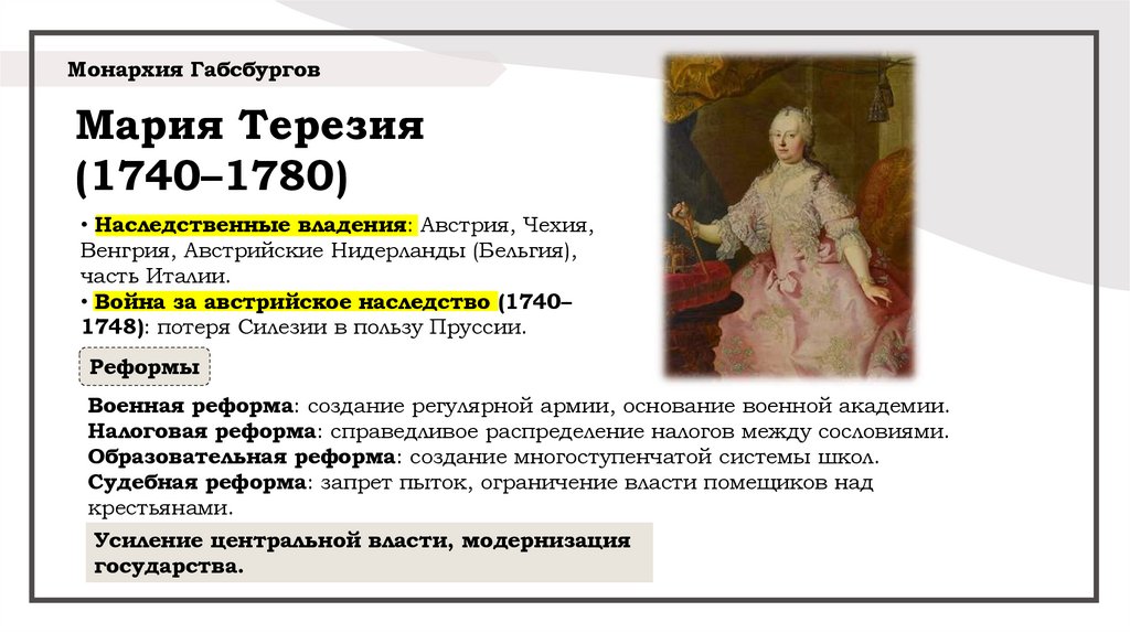 • Австрия: реформы Марии Терезии укрепили