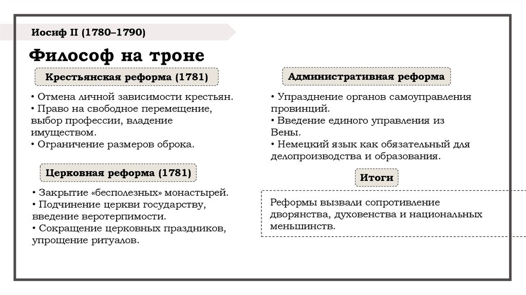 • Общий урок: просвещённый абсолютизм мог