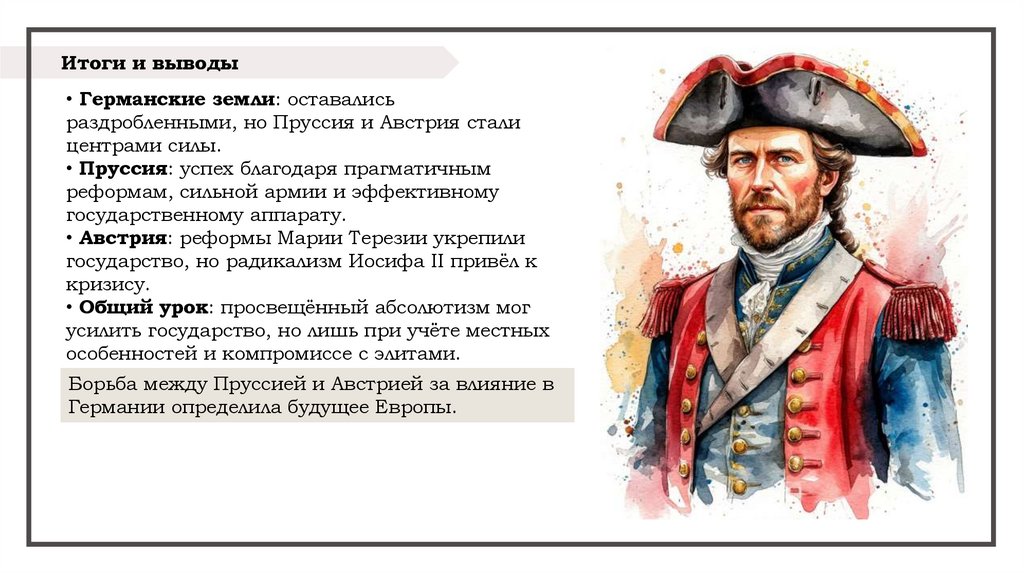 Итоги и выводы• Германские земли: оставались