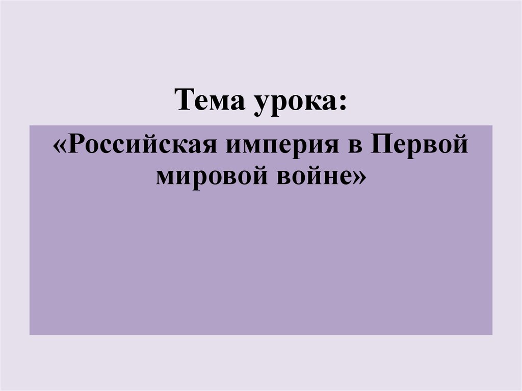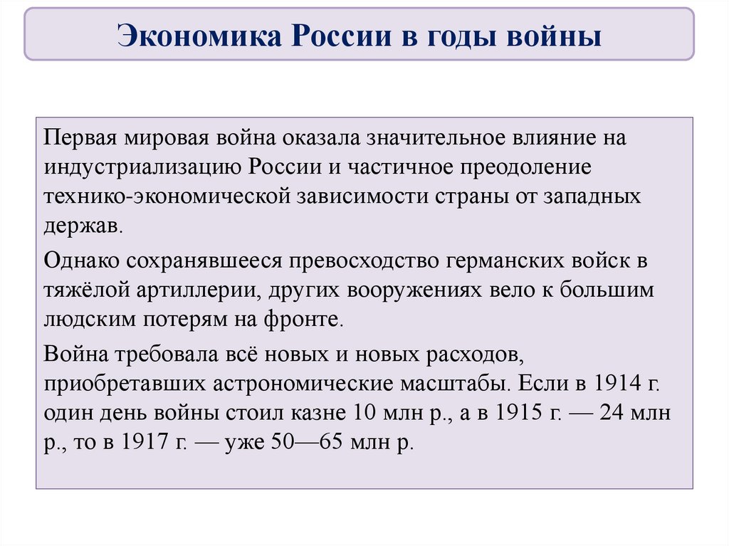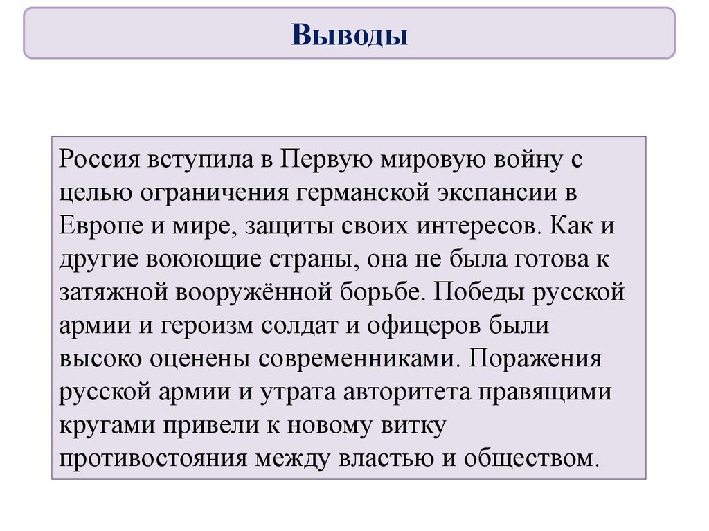 ВыводыРоссия вступила в Первую мировую войну с