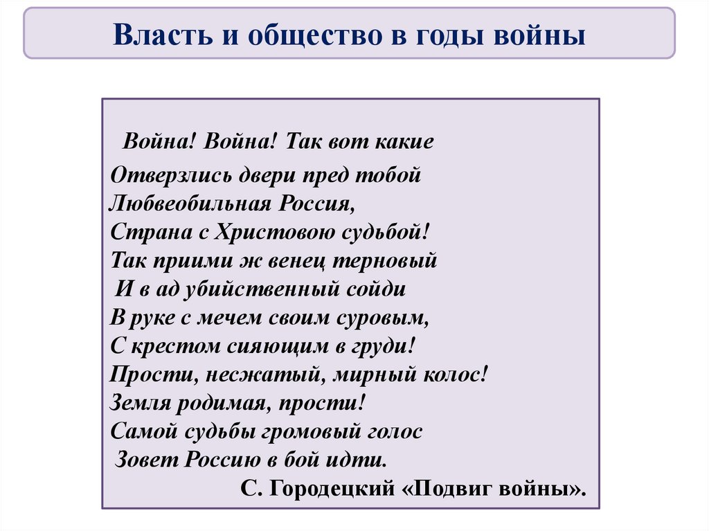 Власть и общество в годы войныНазревание кризиса