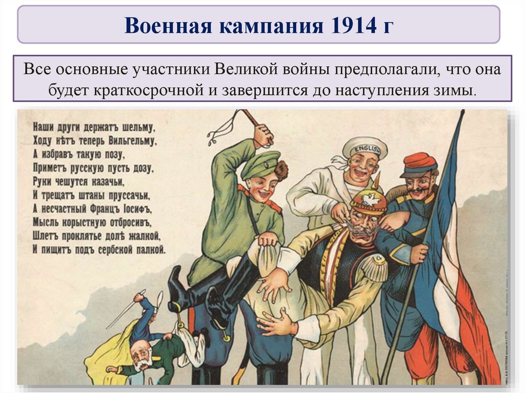 Военная кампания 1914 гВсе основные участники Великой войны предполагали, что она