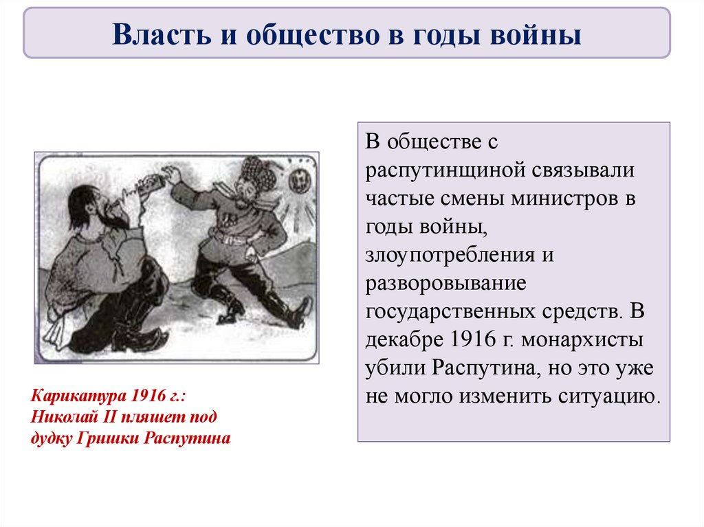 Власть и общество в годы войныКарикатура 1916 г.: