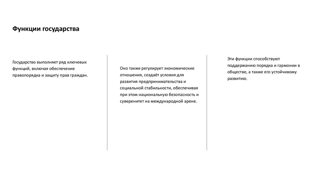 Основные функции государства включают законодательную деятельность, управление обороной и внешней политикой, а также