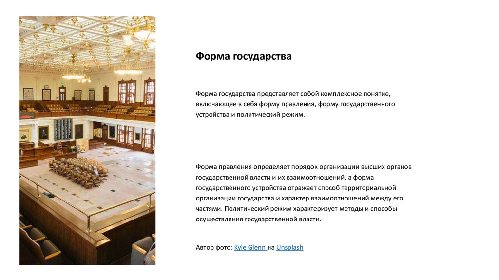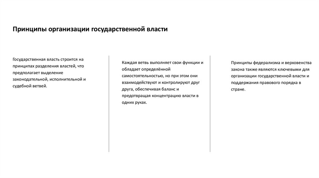 признаки, функции и формы. Мы также обсудили принципы организации государственной власти, разделение властей, типы