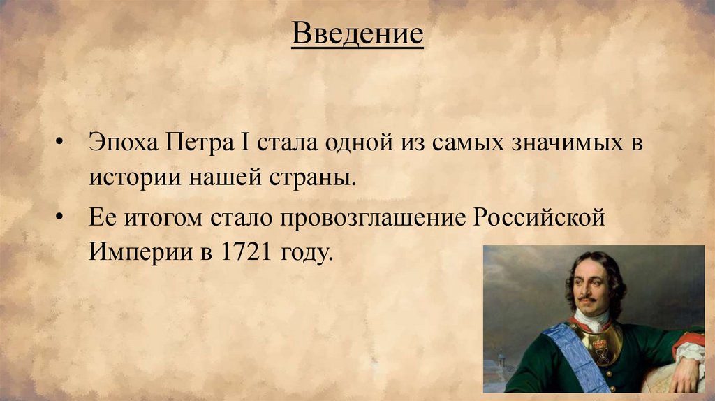 Введение• Эпоха Петра I стала одной из самых значимых в