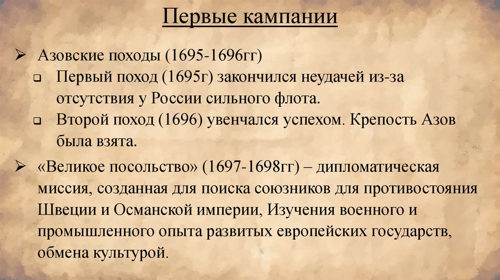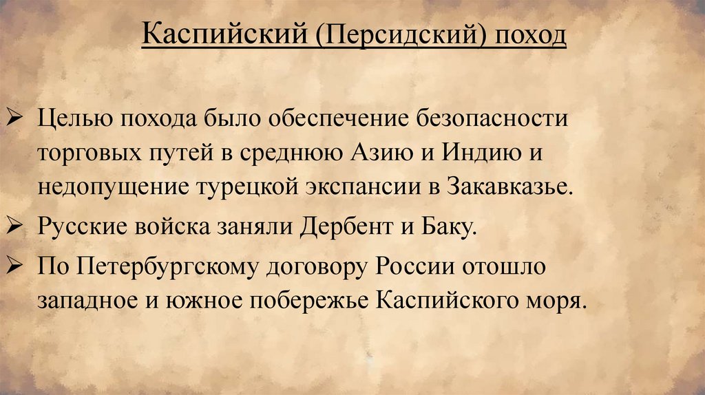 Каспийский (Персидский) походЦелью похода было обеспечение безопасности