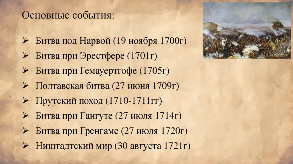 Основные события:Битва под Нарвой (19 ноября 1700г)