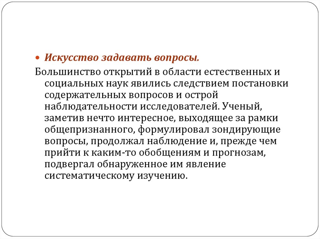 Искусство задавать вопросы.Большинство открытий в области естественных и