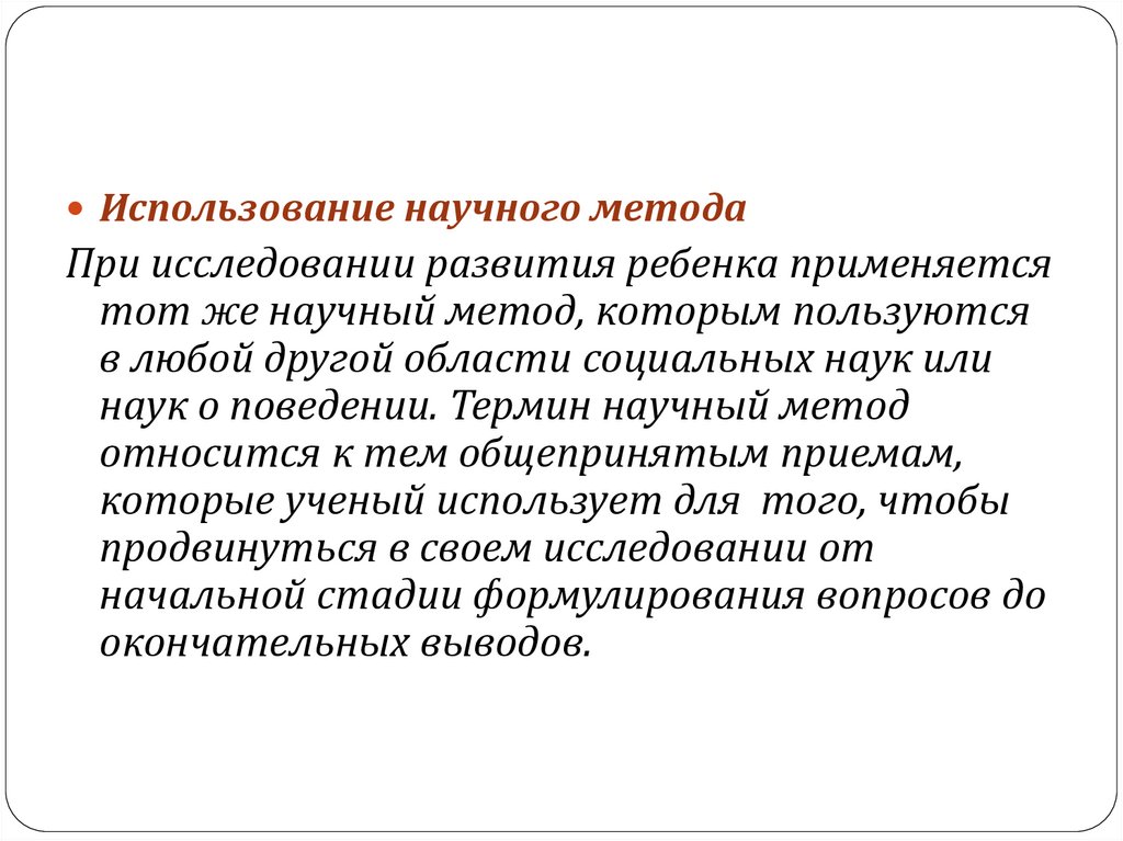 Использование научного методаПри исследовании развития ребенка применяется