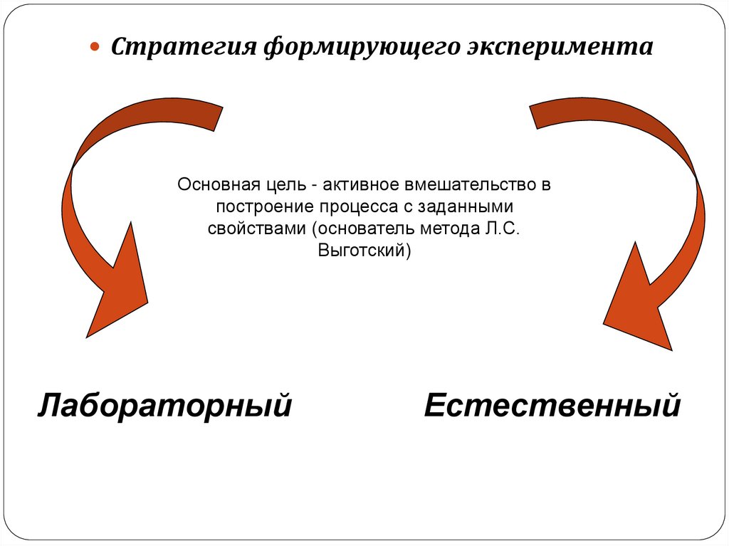 Стратегия формирующего экспериментаОсновная цель - активное вмешательство в