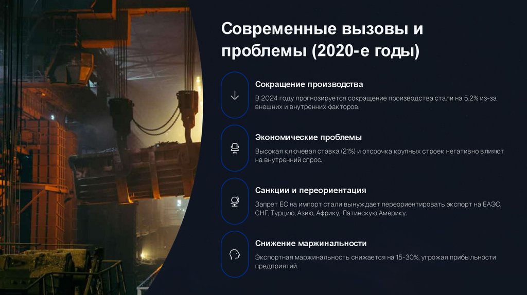 В 2024 году прогнозируется сокращение производства стали на 5,2% из-за