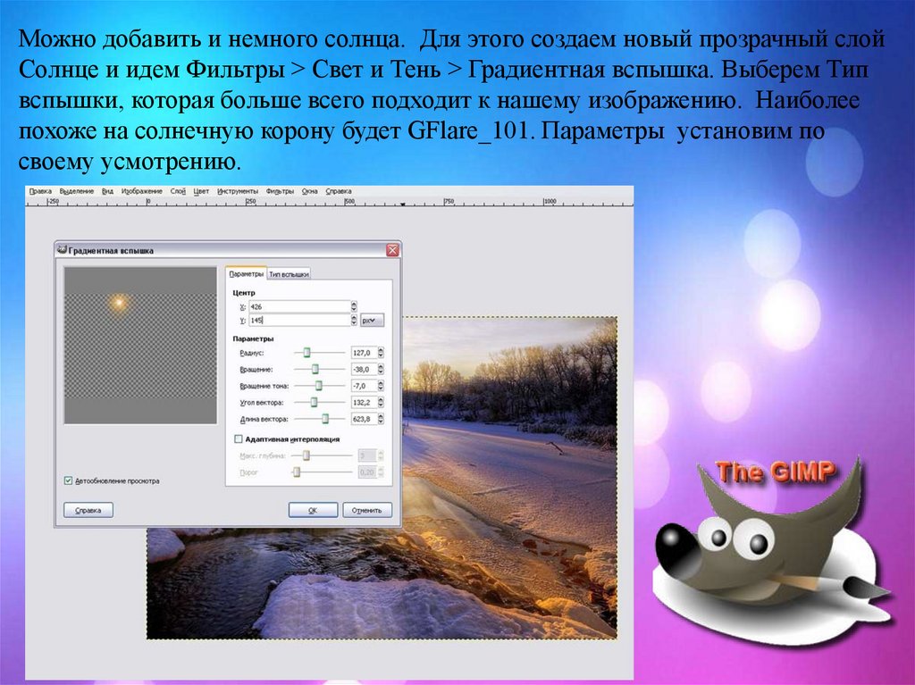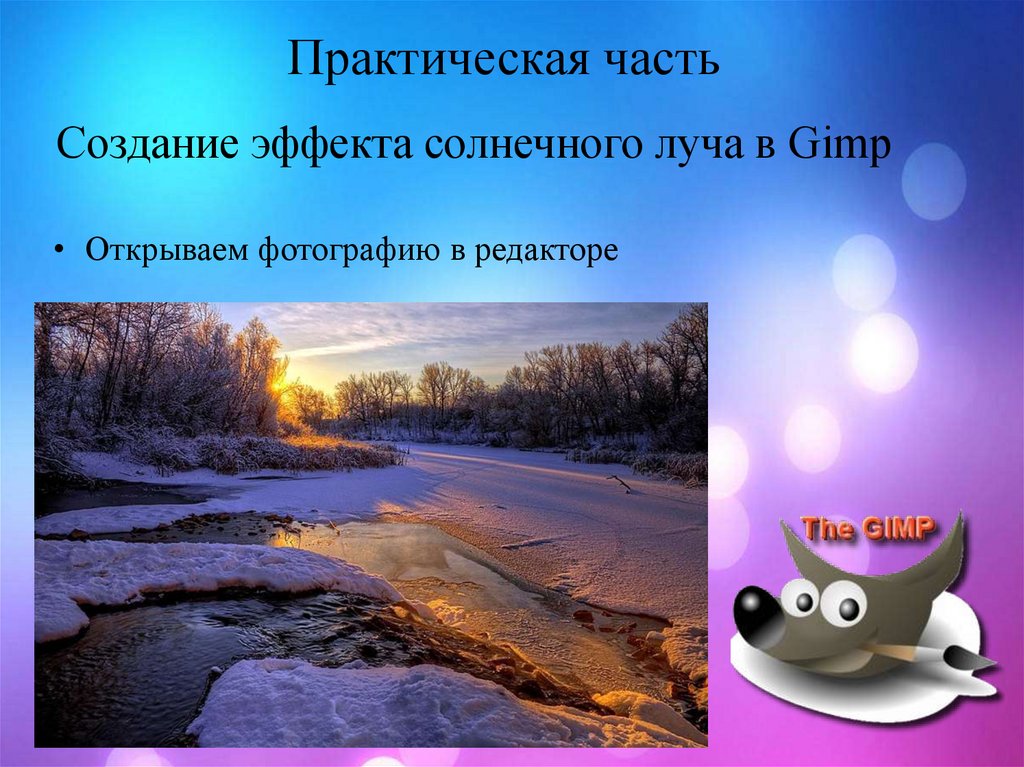 Практическая частьСоздание эффекта солнечного луча в Gimp
